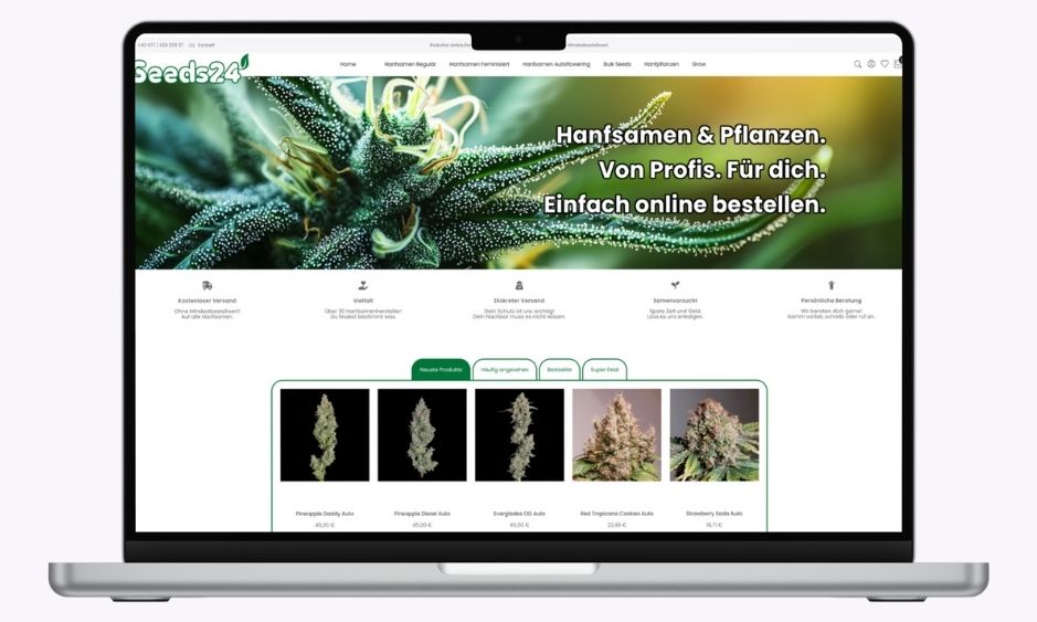 Innovativer Newcomer mit Kundennähe und attraktiven Konditionen. Seeds24 bietet versandkostenfreie Bestellungen ohne Mindestwert und führt bereits über 30 Seed-Brands. Der Shop liefert schnell und diskret; auf Wunsch werden die Samen sogar als vorgezogene Jungpflanzen geliefert – ein Service, der besonders für kommerzielle Kundschaft interessant ist.