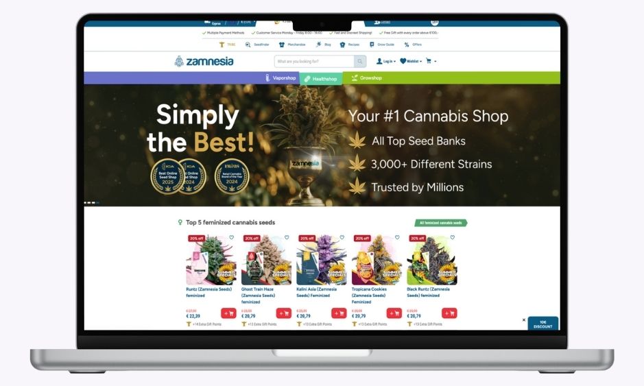 Europas Allrounder mit riesigem Sortiment und Top-Bewertung. Der niederländische Anbieter betreibt einen vollständig deutschsprachigen Shop mit über 3 000 Hanfsamen, einschließlich eigener Züchtungen und zahlreicher Seedbanks. Kundinnen und Kunden schätzen den schnellen, diskreten Versand und Extras wie Gratisgeschenke ab 100 € Bestellwert. Über 63 000 Bewertungen mit einer Zufriedenheitsrate von 9,3/10 unterstreichen die Beliebtheit des Shops.