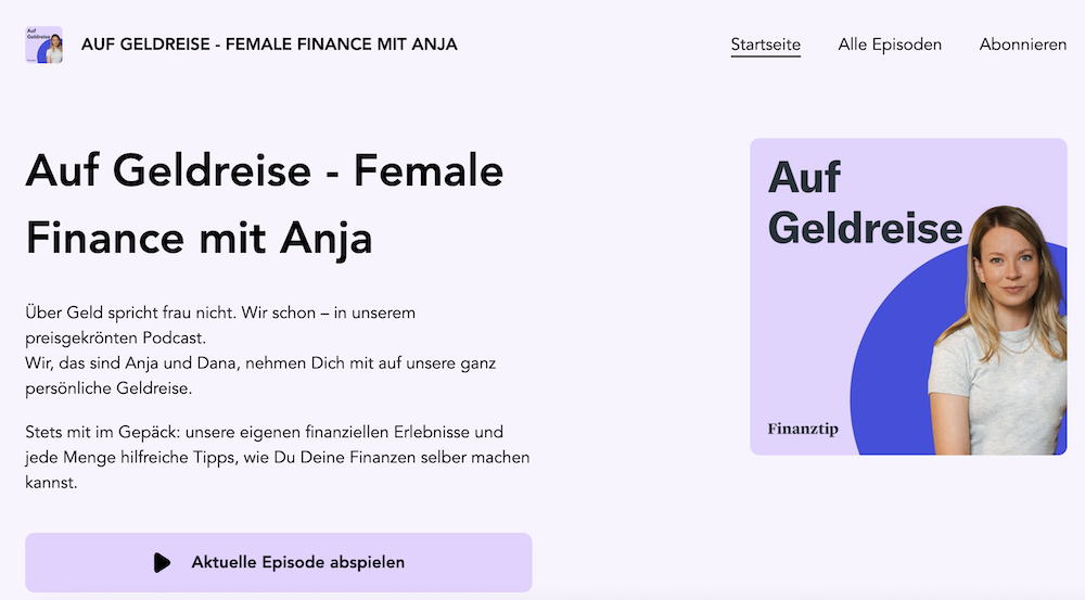 „Auf Geldreise“ ist ein Podcast-Format von Finanztip, das speziell für Frauen konzipiert wurde. Anja Ciechowski, ausgezeichnete Verbraucherjournalistin, spricht darin über Altersvorsorge, Elterngeld, Gehaltsverhandlungen und andere finanzrelevante Alltagsthemen.