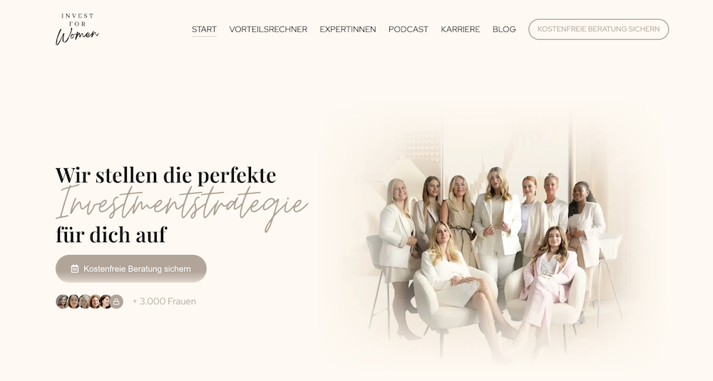 Investforwomen ist die erste vollständig digitalisierte Investmentberatung, die sich ausschließlich an Frauen richtet. Der Clou: Hier gibt es keine Kurse, keine Upsells, keine Motivationscoachings – sondern eine einzige Kernleistung, die konsequent durchdacht ist: 1:1-Beratung von Frauen für Frauen.