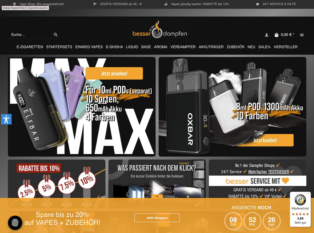 Platz 4: besserdampfen.de – Erfahrener Testsieger-Shop mit Best-Service