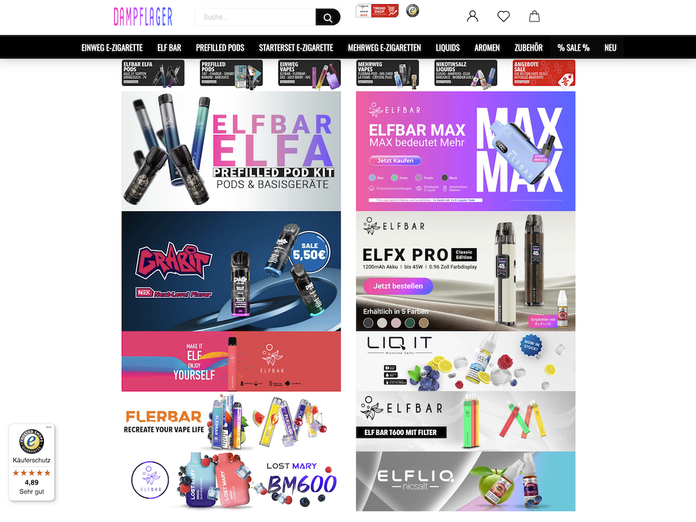 Platz 6: Dampflager.de – Spezialist für Einweg-Vapes mit Top-Preisen