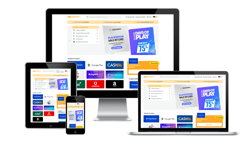 Guthaben.de ist ein etablierter Anbieter und zertifizierter Wiederverkäufer von Paysafecard-Codes. Die Plattform gehört zur internationalen Recharge.com-Gruppe und ist speziell auf den deutschsprachigen Markt ausgerichtet. Guthaben.de überzeugt vor allem durch seine Zuverlässigkeit und einfache Abwicklung: Sie wählen den gewünschten Betrag (zwischen 5 € und 150 €) aus und erhalten den PIN-Code innerhalb von ca. 30 Sekunden per E-Mail zugestellt. Viele Nutzer schätzen diesen schnellen, automatisierten Service, der rund um die Uhr verfügbar ist.